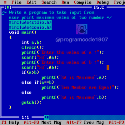 1. Write a Program to Take input from user Print maximum value of two number c program .